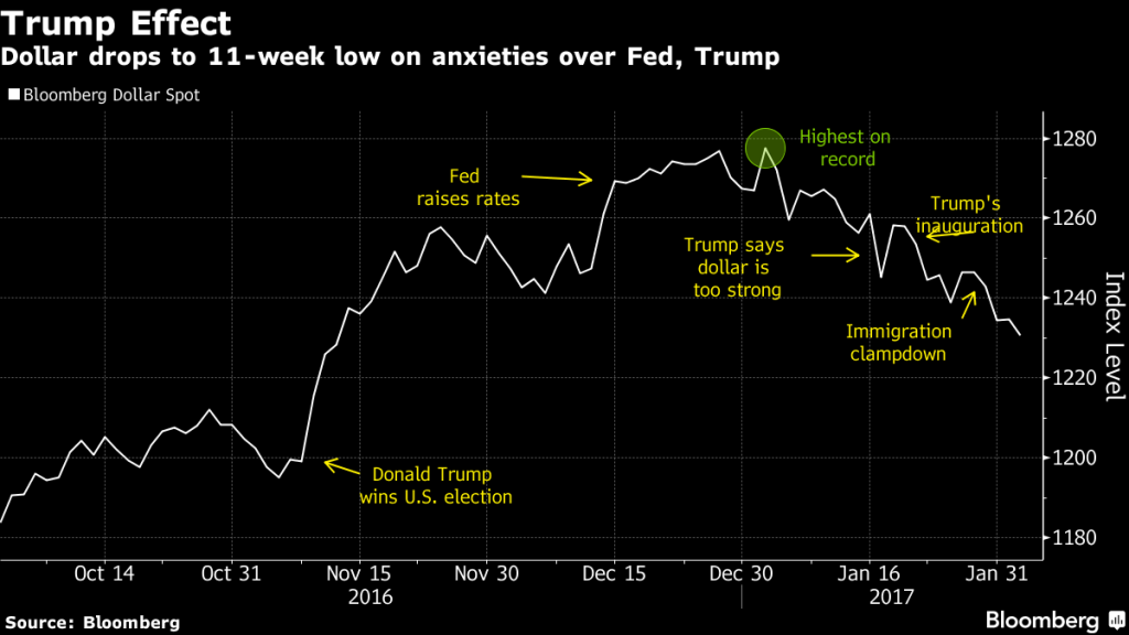 Fears as to whether the Trump Administration will prioritize tax cuts and boost fiscal spending, saw the U.S. dollar fall to two month lows across major currencies.